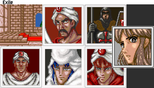 Left: This graphic was used as a marker for unused character pic slots. English translation is “Who are you/Who is this”. (Thanks to John for the translation.)