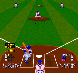 Thank goodness that in addition to that slop-tundra the game offers ballparks that come without diamonds of defecation. More importantly, it actually plays much better than the oldies it initially seems identical to. The fielders here have rifles for arms, so there's none of that "seventeen infield hits a game" bullshit that must be endured in plenty of said oldies and even in some quality titles like World Class Baseball. And while your computer-controlled opponents aren't all that great at the sport, they at least manage to avoid making some of the boneheaded blunders that AI clubs in many other ancient baseball sims commit, such as throwing to uncovered bases. The controls are rarely cause of grief, and the arcade-style action is always fast and fun.