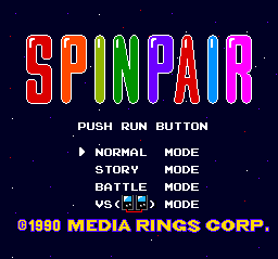 Media Rings developed two incredibly interesting PC Engine sleeper titles in Spiral Wave and Zero4 Champ II, so I'm always eager to give their products a try, even when it comes to a dull-looking well-puzzler like Spin Pair. For the first few minutes of