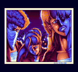 The background graphics are very drab (much, much worse than Riot Zone's), while the music is quite crazy--not in a cool way like, say, Faussete Amour's, but in a repetitive, ultra-irritating way. And none of this awfulness is negated by the occasional