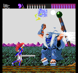 You smack a few frogs or tigers or flaming arrows with your blade, and then it's boss time. And speaking of the bosses, you face the same two clowns over and over again. Decent parallax backs the lackluster action, but most of the scenery is too simplistic for the visuals to