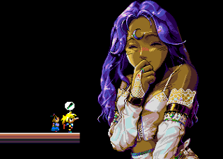 I don't like the characters much at all. Understand that just prior to playing this game for the first time, I'd revisited Cosmic Fantasy 2 and Kabuki Den, which star some of the video-game characters I'm fondest of. Then I sat down with Moonarge and